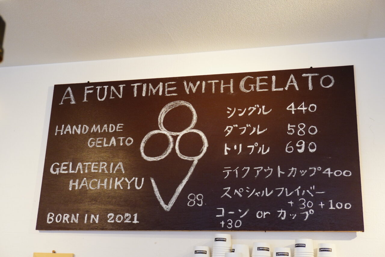 阪急桜井駅から徒歩5分程にある「Gelateria89」は、自然の素材を活かした優しい味わいが魅力のジェラート店で、オーナーさんにお聞きしたところ「Gelateria89」のジェラートは、なるべく自然の物を使いたいというこだわりがあるそうです。